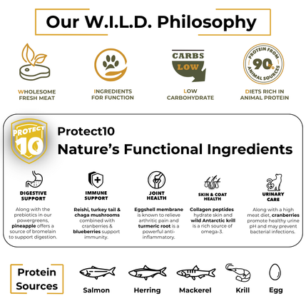 Crafted for fish lovers, our North Atlantic Ocean Fish recipe features high inclusions of fresh salmon combined with herring, mackerel, and Antarctic krill. We’ve added nutrient-dense Powergreens and our Protect10™ blend of nature’s most powerful functional ingredients for a vitality boost. Whether your cat likes to stay indoors or go outside to explore, this protein-rich recipe is sure to keep your cat happy and healthy.